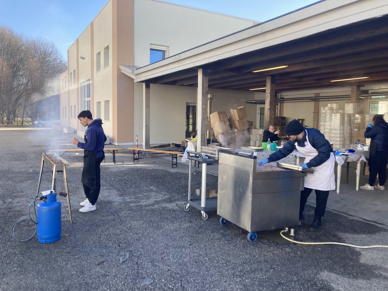 Un menù inedito, cotto all’aperto, approfittando di una fredda giornata di sole invernale, sotto gli occhi dei nostri ospiti, rifocillati per l’occasione con gli arrosticini per ingannare il tempo e scaldare le membra.